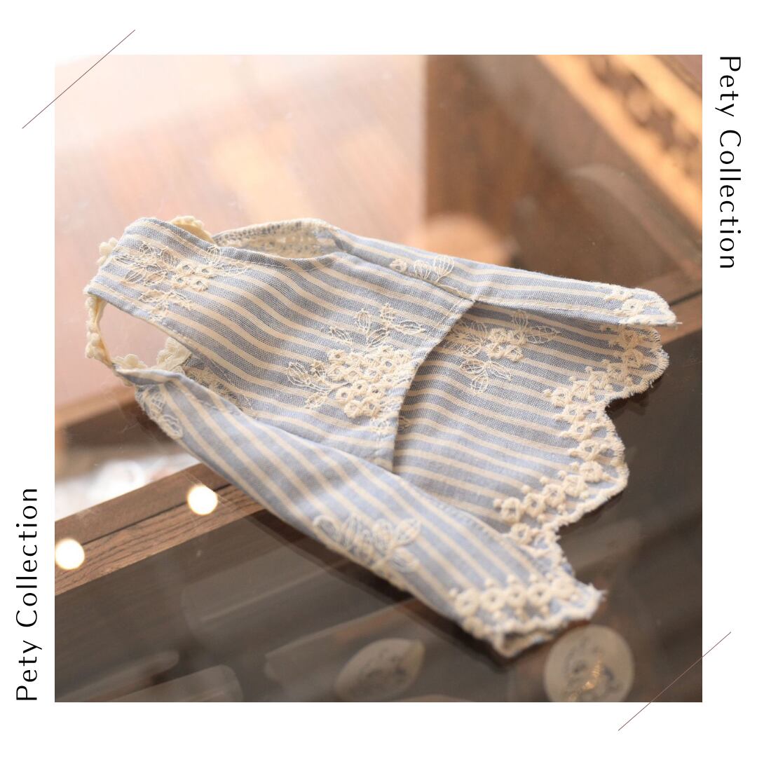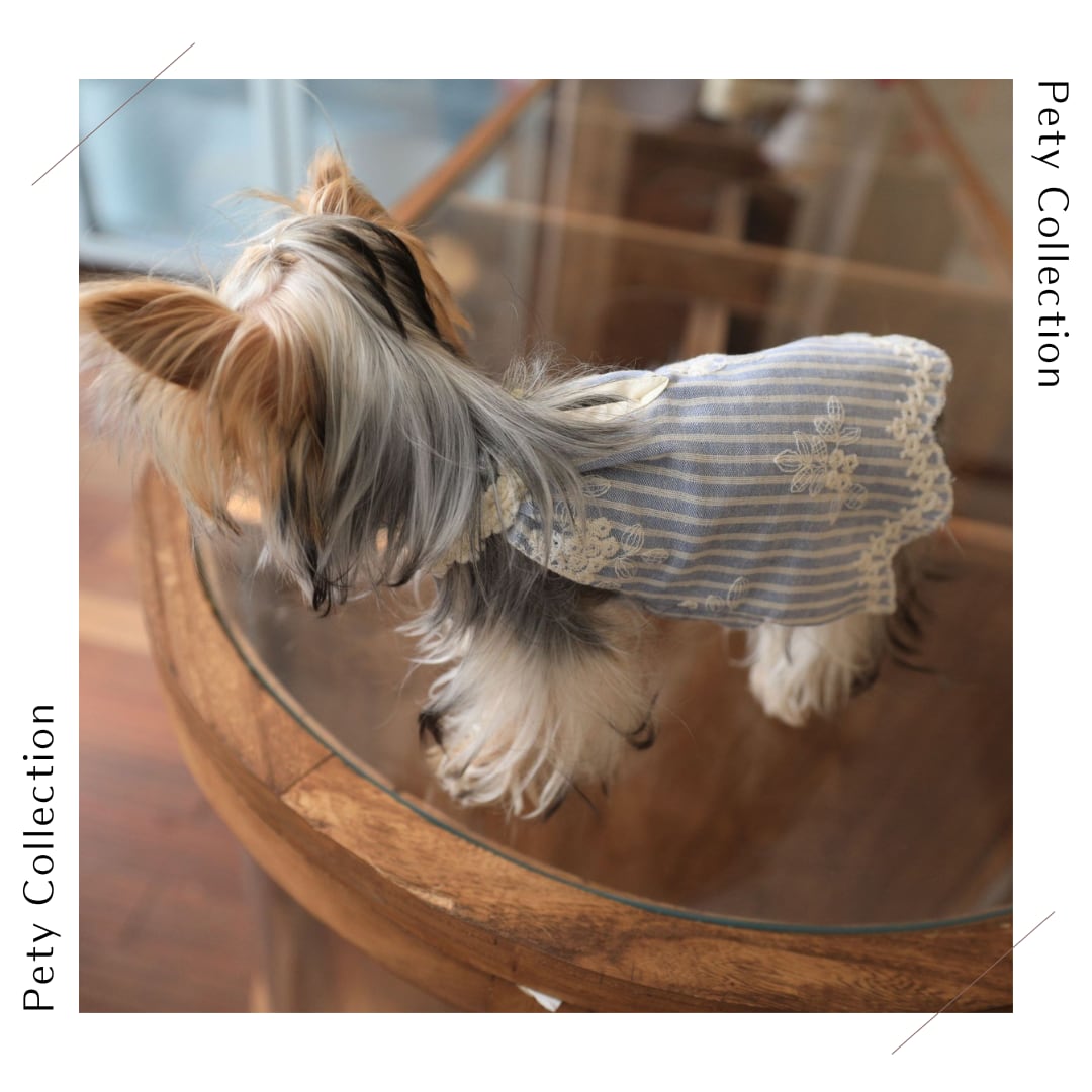 可憐なレースと優しいブルーストライプの組み合わせで、上品な仕上がり